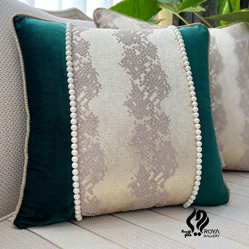 کوسن مربع مرواریدی ماریتا کرم نسکافه سبز