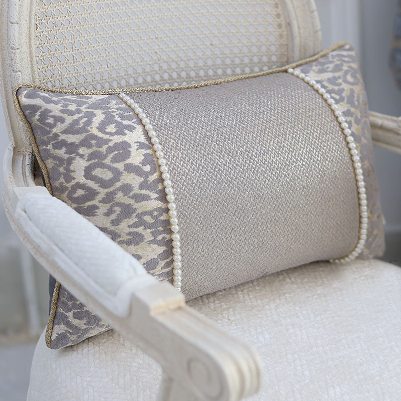 کوسن مستطیل مروارید طرح رز مخمل طوسی خردلی